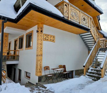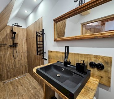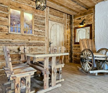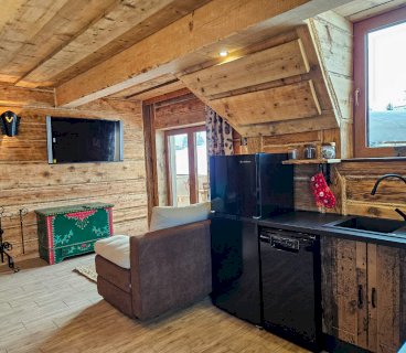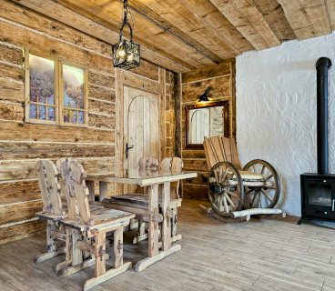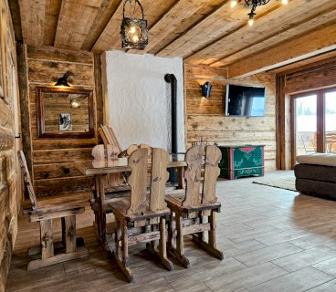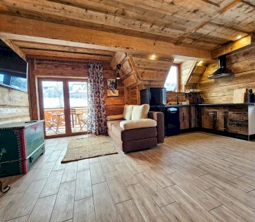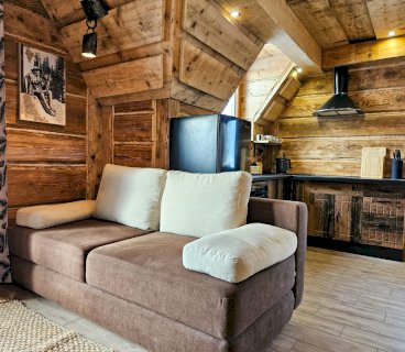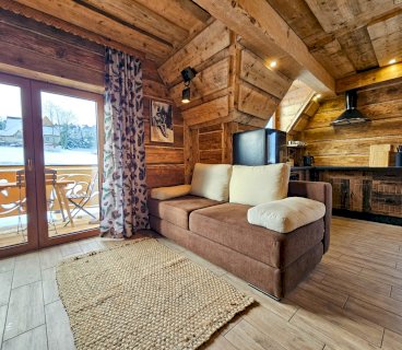 Domek wykańczany przez najlepszych cieśli z Podhala z zachowaniem oryginalnych kutych lamp łóżek i drewnianej struktury z 1912 roku. Na parterze znajduje się przytulny salon z kominkiem, płaskim telewizorem i rozkaladaną kanapą, łazienka z prysznicem i toaletą oraz kuchnia wyposażona w ekspres do kawy, lodówkę, płytę ceramiczną oraz kuchenkę mikrofalową.